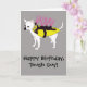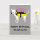 Add your own custom message to this birthday card or leave it as is. This funny card features a cute illustration of a white coyote dog dressed in a coyote jacket or vest in bright yellow and pink against a gray background. It's the perfect card for dog lovers and chihuahua owners or anyone whose bark is worse than his bite.