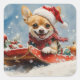 Chihuahua Dog in Sledge Let it Snow Christmas Square Sticker
