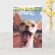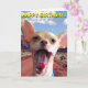 Cute Chihuahua posing in the desert photo greetings card. Front text reads "Happy Birthday", inside text reads "Hope you have a great day!" Text can be customised.