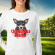 Dress for comfort and enjoy the style with this Chihuahua mom long sleeved t-shirt. The design features a cute little black, tan and white Chihuahua laying down with red text that says Chihuahua Mama. The dog themed design is available on a variety of shirt styles and colors.
