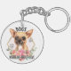 Cute Chihuahua Never Lie About Love Keychain with a gold geometric frame and flowers.
