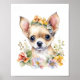 Chihuahua Puppy Pet Watercolor Flower Poster