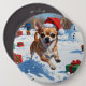 A tiny Chihuahua runs playfully through the snowy winter scene, wearing a festive red Christmas hat. This cheerful design captures the breed’s lively personality, bold spirit, and adorable charm while reflecting the joy and magic of the holiday season. A delightful winter moment full of festive cheer.