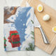 Chihuahua Running in Snow with Christmas Hat Kitchen Towel