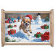 Chihuahua Running in Snow with Christmas Hat Serving Tray