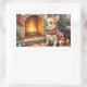 Chihuahua Sitting Fireplace with Christmas Lights Rectangular Sticker