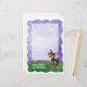 Animal Parade Chihuahua Dog Coordinating Personalized Stationery and Accessories features our original art of a cute black and tan Chihuahua dog character standing in a grassy yard with a textured blue and purple sky with a playful wavy purple border. This fun pet art, painted by our talented children’s illustrator, Traci Van Wagoner, is perfect Chihuahua lovers, dog lovers, and humorous animal art lovers of all ages. On many of our whimsical small dog stationery set accessories you'll find this cute dog coming and going with the his head on one side and this tail on the other. Join the Animal Parade and bring a smile to the face of someone you love with a gift of our cute coordinating and personalized Chihuahua dog stationery gift sets. Woof!