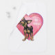 Animal Parade Romantic Chihuahua Dog Personalized Heart and Love gifts, cards, and accessories features our fun artwork of a black and tan Chihuahua holding a pretty rose in its mouth with layered purple, red, and pink hearts behind digitally painted by our talented children's artist, Traci Van Wagoner. This sweet dog in love design is a perfect gift for Valentine's day, his or her birthday, for proposing marriage in a fun and original way, or just to say, I love you. Woof!