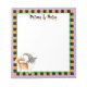 Happy Howl-oween! Keep track of your potions, tricks, treats or anything else on this notepad with this cute Chihuahua wearing a green mask and a witch hat decorated with a silly spider. Great gift for kids of all ages who love Long Coat Chihuahuas and Halloween.