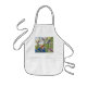 This apron is made with a durable fabric! My grandson LOVES it! The shape provides great coverage to protect clothes from paint spatters, etc. The print quality is excellent! The detailed lines of the dragon drawings are printed in a crisp, clean manner.