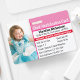 This child identification card is perfect for your child. It contains pink coloring, along with black text on the front for address, stats such as height, weight, blood type and date of birth. There is also room to add emergency contact numbers and names. Replace the template image with that of your child as well!