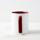 White cup with red handle and red rim.