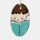 Child reading a book ceramic ornament