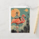 AI generated digital art of a girl riding a giant pink flamingo in a mixed media collage style