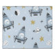 Childish seamless pattern with hand drawn space elements, rocket, star, planet. Dinosaur in space. Trendy kids background.