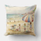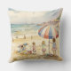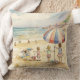 This throw pillow is decorated with Children Playing On A Sandy Beach watercolor painting.