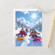 Adorable Christmas postcards you can personalize with your own holiday message. The front is an adorable winter scene with kids sledding gleefully down the hill.