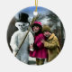 CHILDREN WITH SNOWMAN CERAMIC ORNAMENT
