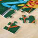 Just plain fun—another way to reinforce a child’s ABCs learning—with this puzzle. Large pieces with illustration of a green blackboard and painted letters. By artist, L. Diane Johnson.