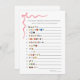 Children's Books Emoji Pictionary Shower Game activity card featuring a design with a pink bow. A fun way to interact with shower guests. {ANSWERS: 1. Jungle Book, 2. One Fish, Two Fish, Red Fish, Blue Fish 3. Cat in the Hat 4. Five Little Monkeys 5. Chicka Chicka Boom Boom 6. The Three Little Pigs 7. Where the Wild Things Are 8. If You Give a Mouse a Cookie 9. Cloudy with a Chance of Meatballs 10. Hungry Caterpillar 11. Charlotte's Web 12. Rainbow Fish 13. Green Eggs and Ham 14. Brown Bear, Brown Bear What Do You See? }