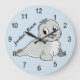Personalized child's room wall clock with baby blue customizable background and a gray baby seal. Customize the the background color, name, room, or add your own text, this clock makes a great gift for your special child! All our products can be custom designed to meet your needs at no extra charge. Simply contact us through our store. Coordinating products available: Just ask us!