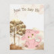 Delightful image on a postcard of a little, pink leopard in a savannah landscape.