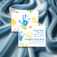 Children's Daycare Business Card -Customize for your own. Painted children's hands in blue, yellow, green & red.
