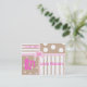 Colorful children's calling card / enclosure card, with polka dots and stripes, in tan, white, and pink. Customize the text areas to personalize for your child.