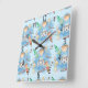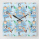 Children's, Little Boy Square Wall Clock, a sweet whimsical design that would look great in any child's room, a fun design with little watercolor painted, print, boys, some with toys, some snuggled for winter, the main one having a soccer/football, with thanks to HandMek
