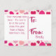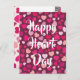 This cute and colorful postcard is perfect for school Valentine's. The front has an all over print of hearts, hearts and more hearts in many tints and shades of pink. It has white typography that says "Happy Heart Day". The back has space for your child's customized message as well as the name of your child. All your little one needs to do is fill out a name in the To section and deliver the cards.