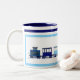Cute childrens train in black and blues stretches across this white mug. Customize by adding any text you want. Makes a nice gift mug to fill with candy or small goodies.