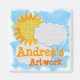 change the existing name to your childs name to create a personalize ARTWORK MAGNET to display all their work on the refridgerator with pride. this dimensional, textured sunshine and clouds is a fun way to display their creativity. dimensional computer art by kaps images