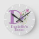 Design features Monogram & Name with Flowers either side in a water colour pastel style. Childs Bedroom Clock. Example name is Danielle. Change name as desired for anyone with a name beginning with D.