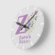 Design features Monogram & Name with Flowers either side in a water colour pastel style. Example name is Zara. Change name as desired for anyone with a name beginning with Z. Child's bedroom clock.