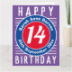 Happy 14th birthday. 14th birthday card. Bright colours and bold design. Child's birthday card. 14 years old.