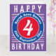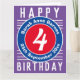 Happy Birthday Child. Bright colours and bold design. Child's birthday card. 4 years old.