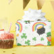 This fun St Patrick's Day pattern using a child's coloring style is perfect for gift wrap. There are leprechauns, gold, rainbows, and shamrocks. Recommended for St Patrick's Day or a birthday. AI generated pattern by IveyCottage.