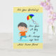 Cute picture of a little boy flying a kite, can be personalized with age and name of child. Front of card reads, "It's Your Birthday! Now Your A Big 4!". Inside of card reads, "May Your Day Be Full Of High Flying Fun! Happy Birthday!". A cute card to give a little boy on his birthday!