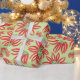Wrapping paper with chili pepper in a circle to look like a poinsettia flower.