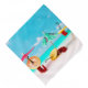 Three red chili peppers on the beach. Hot sunny day, blue sea, white sand, umbrellas and sombreros. Two peppers are drowsy under beach umbrellas, the third one is waistdeep in the water. Every hour is a happy hour at the beach. Sun, Sea, Sand, Sombrero. Square format products and gifts