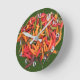 Chili peppers in red, green and yellow from the organic market. Deep green background. Fun image for a kitchen clock for the cook who never has enough time.