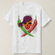 Chili Pirate :: Cool skull and crossbones design with a chili pepper twist. Beautiful rich chili pepper colors set this cool shirt design off while a grungy halftone pattern sets the background. This is one very hot chili pepper t-shirt design for any pepper fan.