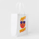 This design is all about good energy and effortless style. Featuring a smiling emoji with sunglasses and the phrase “Just Vibin’” above and below, it radiates laid-back confidence. Whether you’re out with friends, hitting a festival, or just keeping it cool at home, this grocery bag is your go-to for spreading sunshine and smooth vibes. It’s not just a look—it’s a whole attitude.