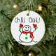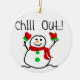 A cute snowman with a red scarf and red mittens and text that reads "Chill Out!" on a cute snowman holiday keepsake ornament.