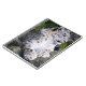 Snow leopard "chillin out" on rocks, portrait photograph.
