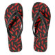 Fun flip-flops printed with a pattern of spicy red chilli peppers. Chilli addicts will appreciate these black flip-flops, featuring a pattern of bright red chilli peppers.
