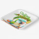 A Square Paper Plate With The Typography Chilling And Grilling Party Parrot