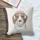 The design features an illustration of a relaxing beagle wearing headphones and blowing pink bubblegum. With your personalized favorite background color, it makes a cute, funny, and unique throw pillow for dog lovers.