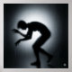 A high-quality graphic of a chilling silhouette of a person depicted behind a pane of frosted glass. The figure is captured in a contorted, hunched-over pose.