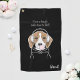 The design features an illustration of a relaxing beagle wearing headphones and blowing pink bubblegum. With your personalized text and favorite background color, it makes a cute, funny, and unique golf towel for dog lovers.
